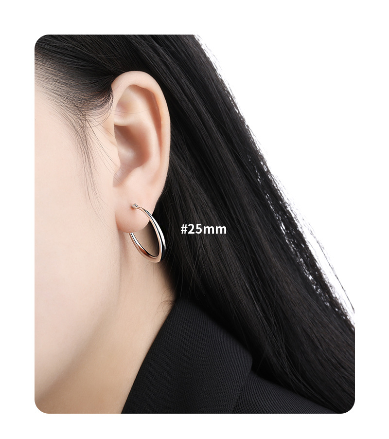 Crystaro Slim Polished Round Hoop Earrings in S925 Sterling Silver